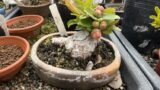 白い砂利を敷いたトレーで腰水を与えた上で、