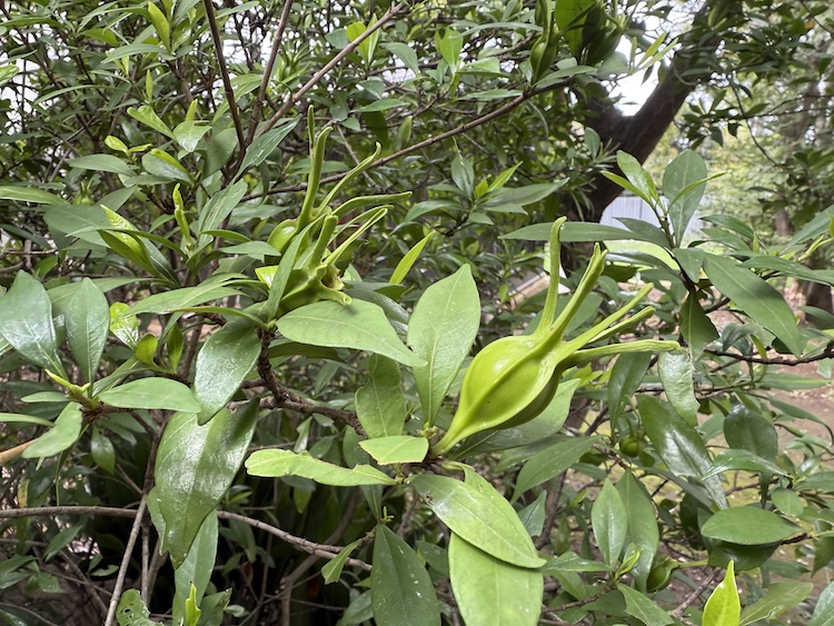お庭に『梔子(くちなし)』の実が出来ていました。