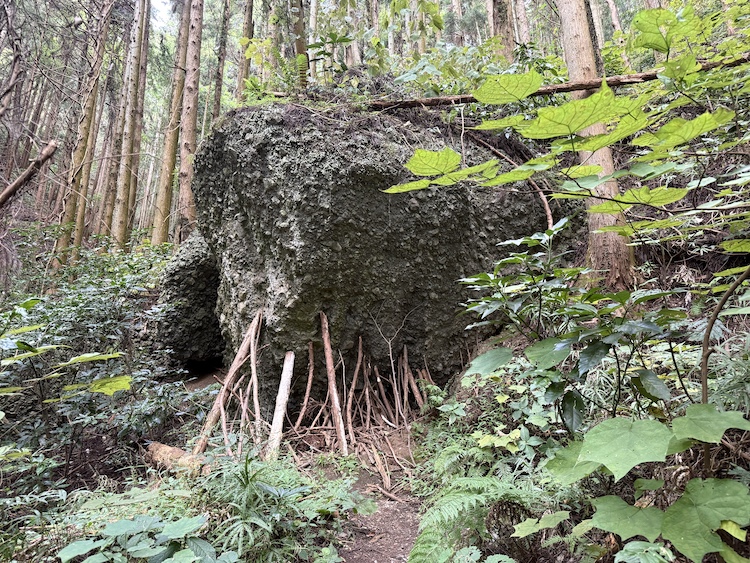 巨石をみたら枝で支えたくなるのでしょうか?他の山でも見られる景色です。