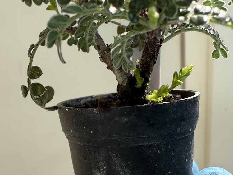 『磯山椒(いそざんしょう)』を見ていたら、新芽が伸びているのを発見。