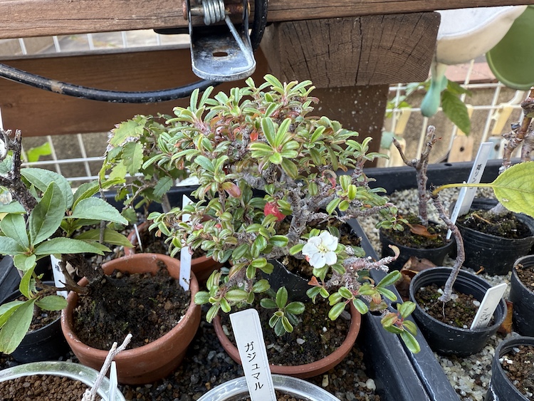 取り木を仕掛けている『シロシタン』さんですが、一輪だけ可愛らしい花を咲かせていました。