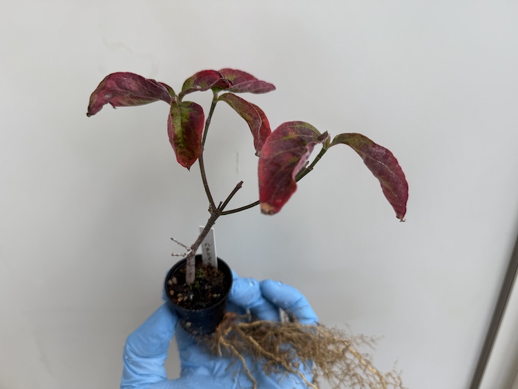 実生で育てている『ハナミズキ』さんも真っ赤にお化粧していました。