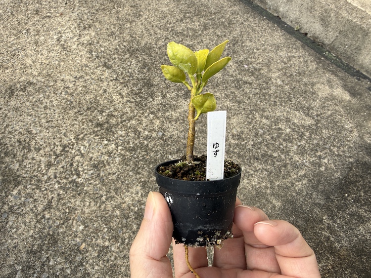 実生(読み:みしょう、意味:タネから育てる)で育てている『ゆず』さん。