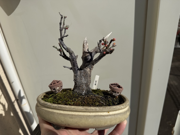 『寒紅梅』さんは咲き始めていて、『野梅』さんももうすぐ咲きそうなのですが、『紅白梅』さんはまだ眠っているようです。