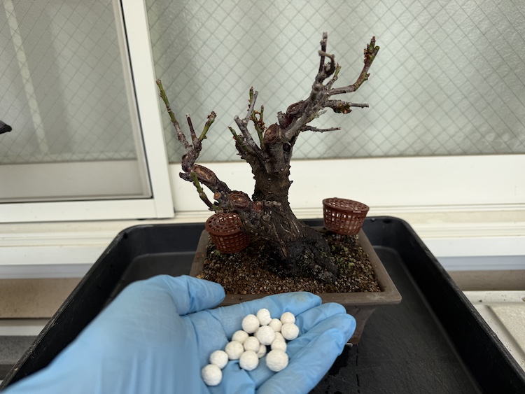 お花を見せてくれたお礼に肥料(お礼肥)も乗っけて、フィニッシュです。