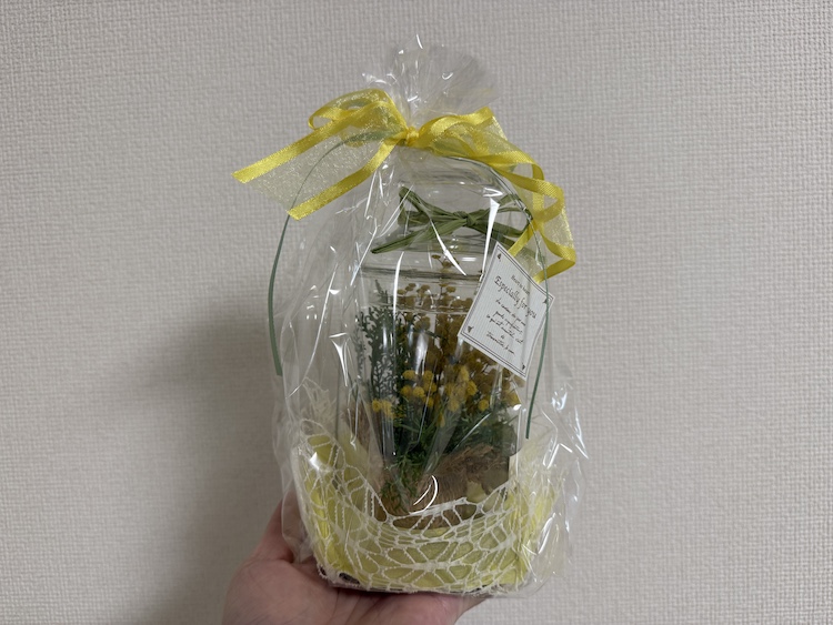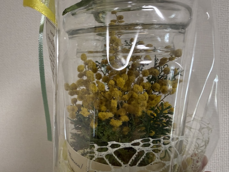 ホワイトデーのお返しに『ミモザ』のブリザーブドフラワーを妻にプレゼント。