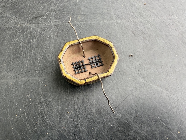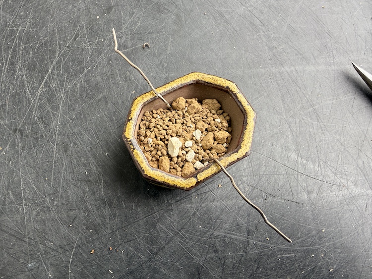 鉢に鉢底ネットと樹を固定するための針金を用意。