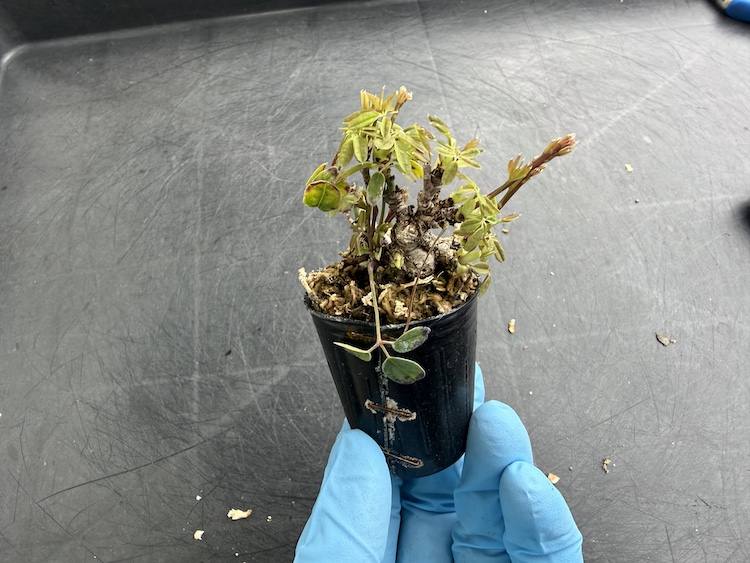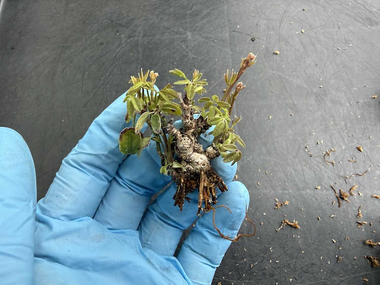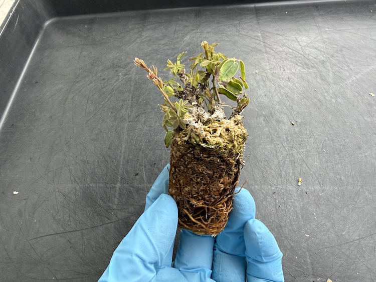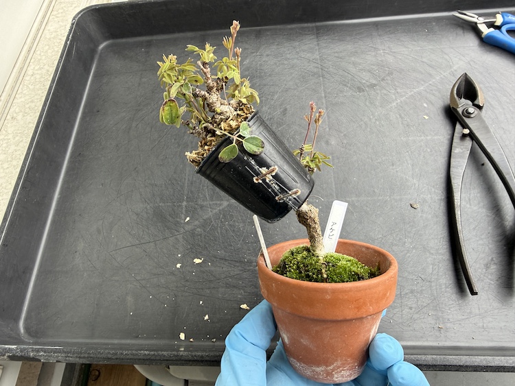 葉っぱも展開しているし、根っこは出ていると確信をもって取り外し。