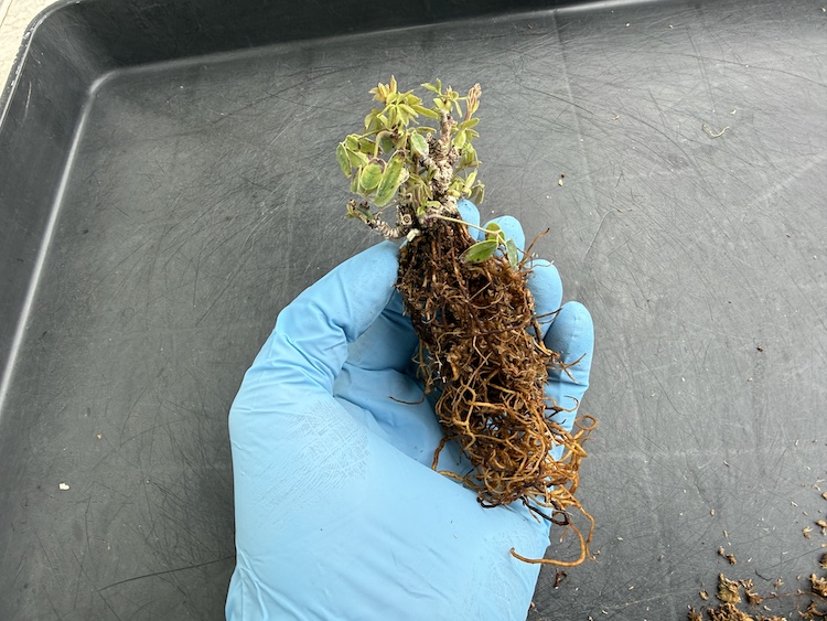 黒ポットを外した所、根っこでびっしり。かなり元気です。