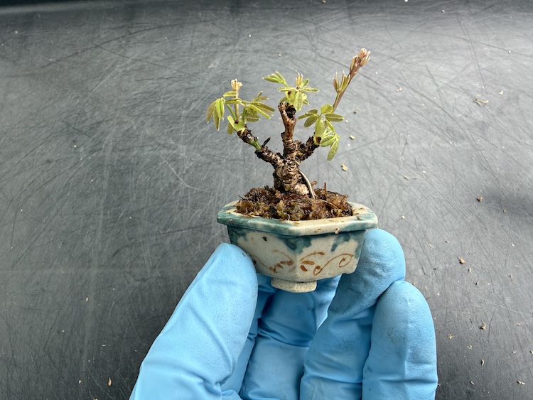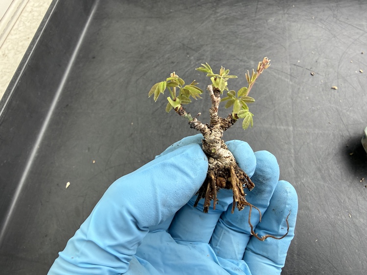 流石に根っこを切りすぎたので、枝葉も最小限欲しい部分だけ残して剪定をしました。