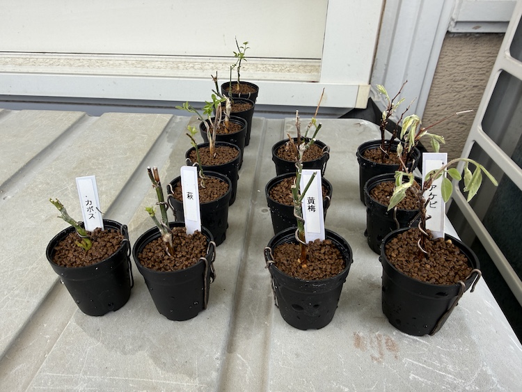 他の子達も同様に鉢上げをして、4種類で合計12鉢の苗木が出来ました。