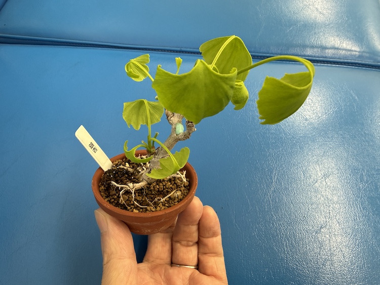 私は実生(種から)で育てている『公孫樹(いちょう)』の芽摘みをしつつ、会員さんの鉢のお手入れもしました。