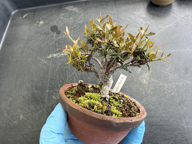 『チリメンカズラ』さんの形が整ってきたので、化粧鉢に植え替え。