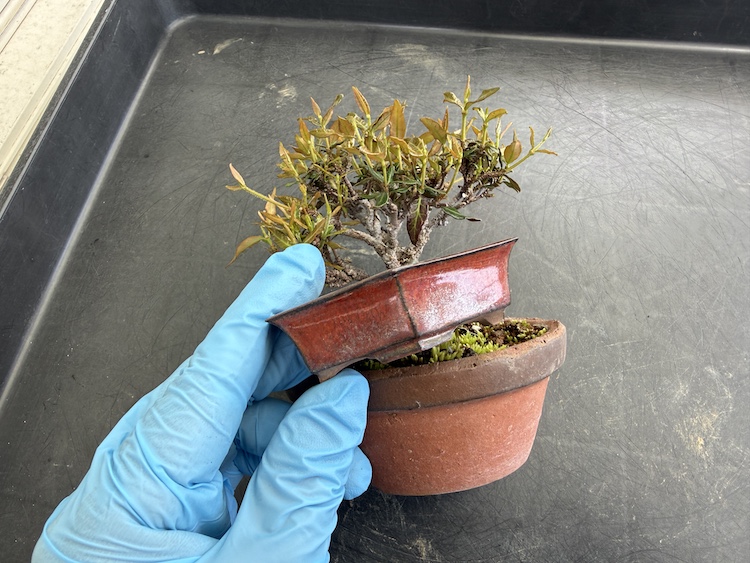 実は展示会の前の作業なのですが、『チリメンカズラ』を植え替えしました。