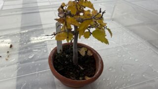 今日は小鉢会の定例会でした。今回は、古葉取りと枯れ枝のお掃除をしつつ、いつも通り会の皆様と盆栽トークを楽しみました。ほっといても落葉するのですが、ピンセットで取り除いて針金を掛けておきました。針金を掛けたいから古葉を取ると言っても過言ではな...