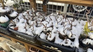 ちょっと前のお話ですが、我が家の盆栽達が雪化粧をしていたので、日課の水やりで溶かしておきました。念の為ですが、雪を溶かそうとしてお湯をかけちゃダメですよ!↓ブログ村のランキングに参加しています。 ポチッとしていただけると嬉しいです。にほんブ...